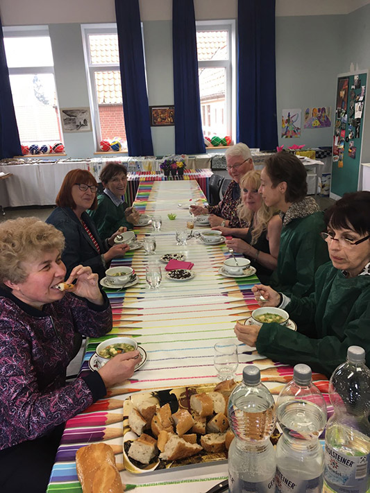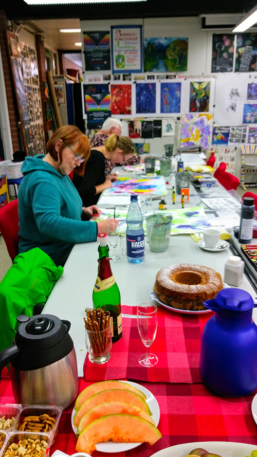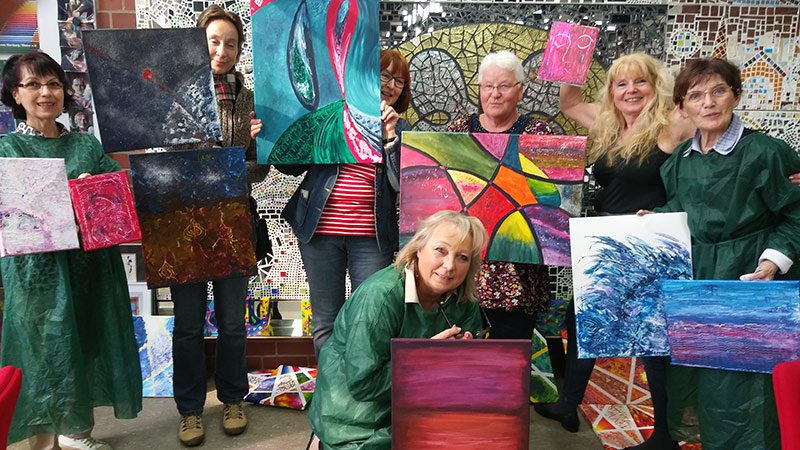 Nach dem gelungenen Oasentag im Januar diesen Jahres, beschlossen die Teilnehmerinnen dieses Event für Geist, Herz und Seele zu einer regelmäßigen Einrichtung in der Kunstschule Mittelweser werden zu lassen. Am 1. April trafen sich Frauen, die Lust auf die Entdeckung ihrer eigenen Kreativität hatten. Für viele Stunden durfte der Alltag einmal vergessen werden und tief in Farben und Wohlgefühl gebadet werden. Auch der Genuss von Leckereien kam bei diesem Treffen nicht zu kurz. Am Ende des Tages präsentierten die Damen stolz ihre gelungenen Schöpfungen.