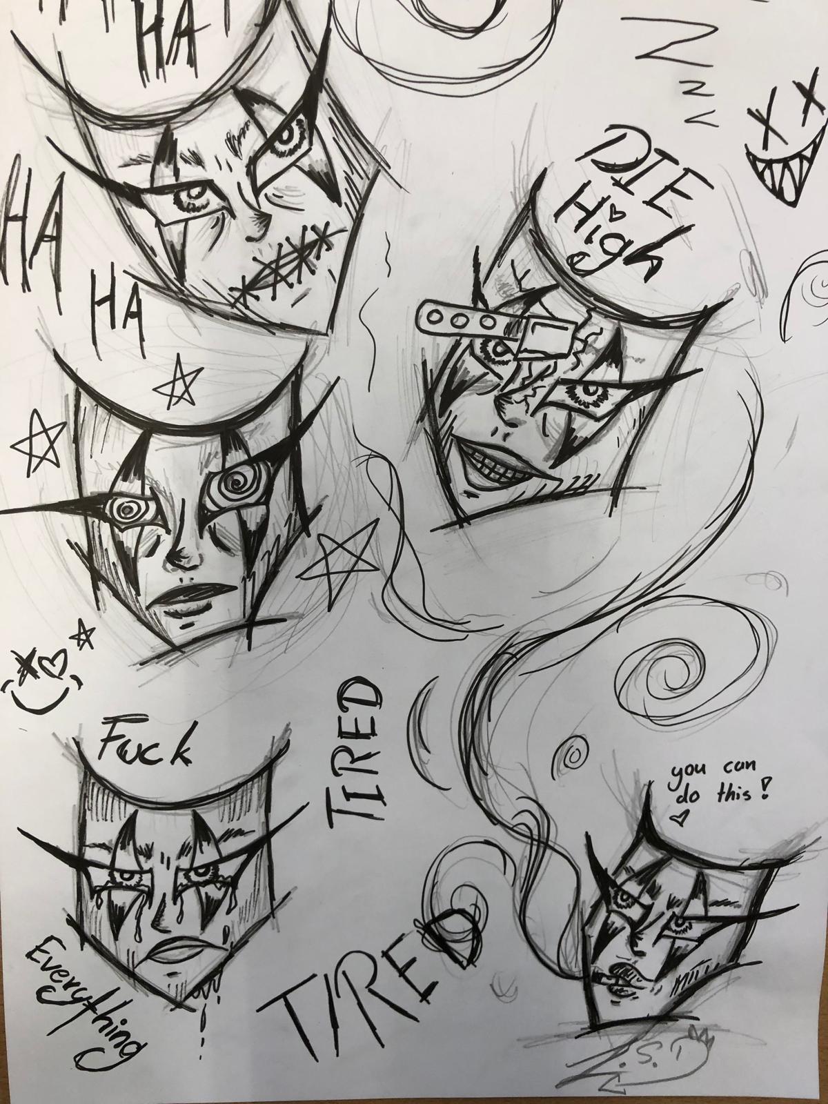 Lara Domberg "Masken", Zeichnung
