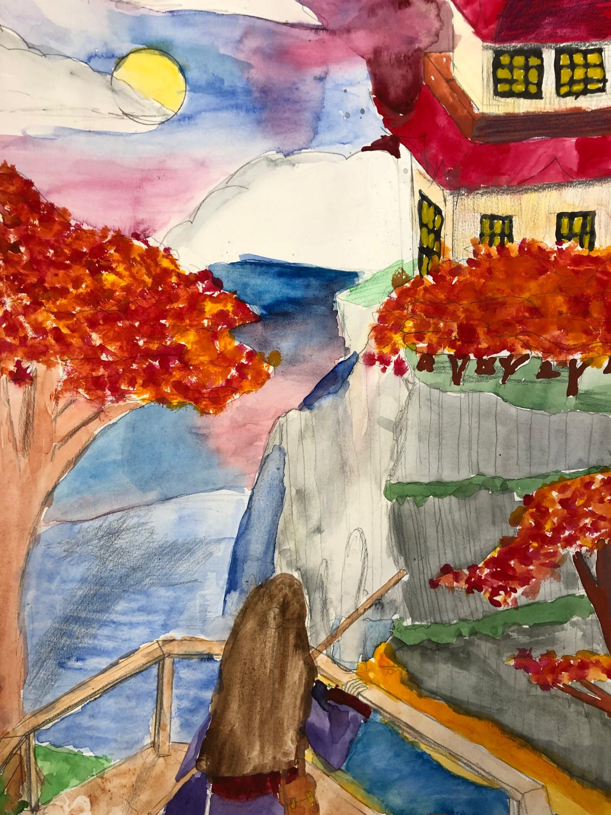 Nach einem Besuch in der Mahn- und Gedenkstätte Pulverfabrik Liebenau erstellten Jugendliche diese eindrucksvollen Bilder unter Anleitung von Kunstpädagogin Lilia Gawrilenko in der Kunstschule in Stolzenau. Die jungen KünstlerInnen schilderten ihre Gedanken zu ihren Werken.